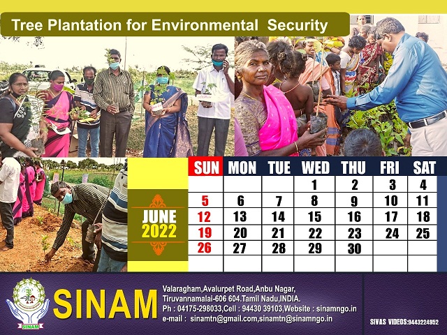 Eco clubs are formed in schools and the children are trained in Tree plantation, tree protection and preservation of Bio-diversity. The climate change and global warming is combated with various awareness and action programmes. Thousands of trees were planted in Tiruvannamalai District schools, colleges and in the wasteland sites. Organic farming has been promoted through the farmers clubs and farmers training. Environmental campaigns are organised every year during world environment day. SINAM campus itself is an eco-friendly tobacco free zone.